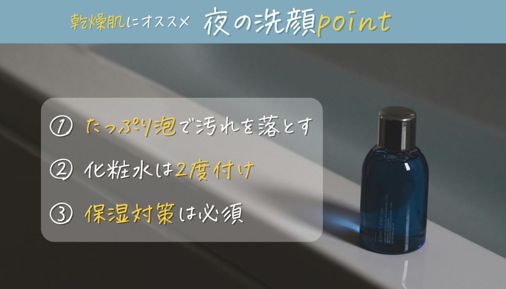 夜は、1日のダメージをリセットし、肌の再生をサポートする絶好のタイミングです。睡眠中に肌がしっかりと修復されるよう、夜ならではの念入りな保湿ルーティンを取り入れて、乾燥に負けない肌を作りましょう。