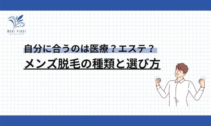メンズ脱毛を始めたいけれど、種類が多くてどれを選べばいいか分からない…と悩んでいませんか?「医療脱毛」と「エステ脱毛」、さらにその中でも様々な種類があり、それぞれ特徴や効果、料金が異なります。